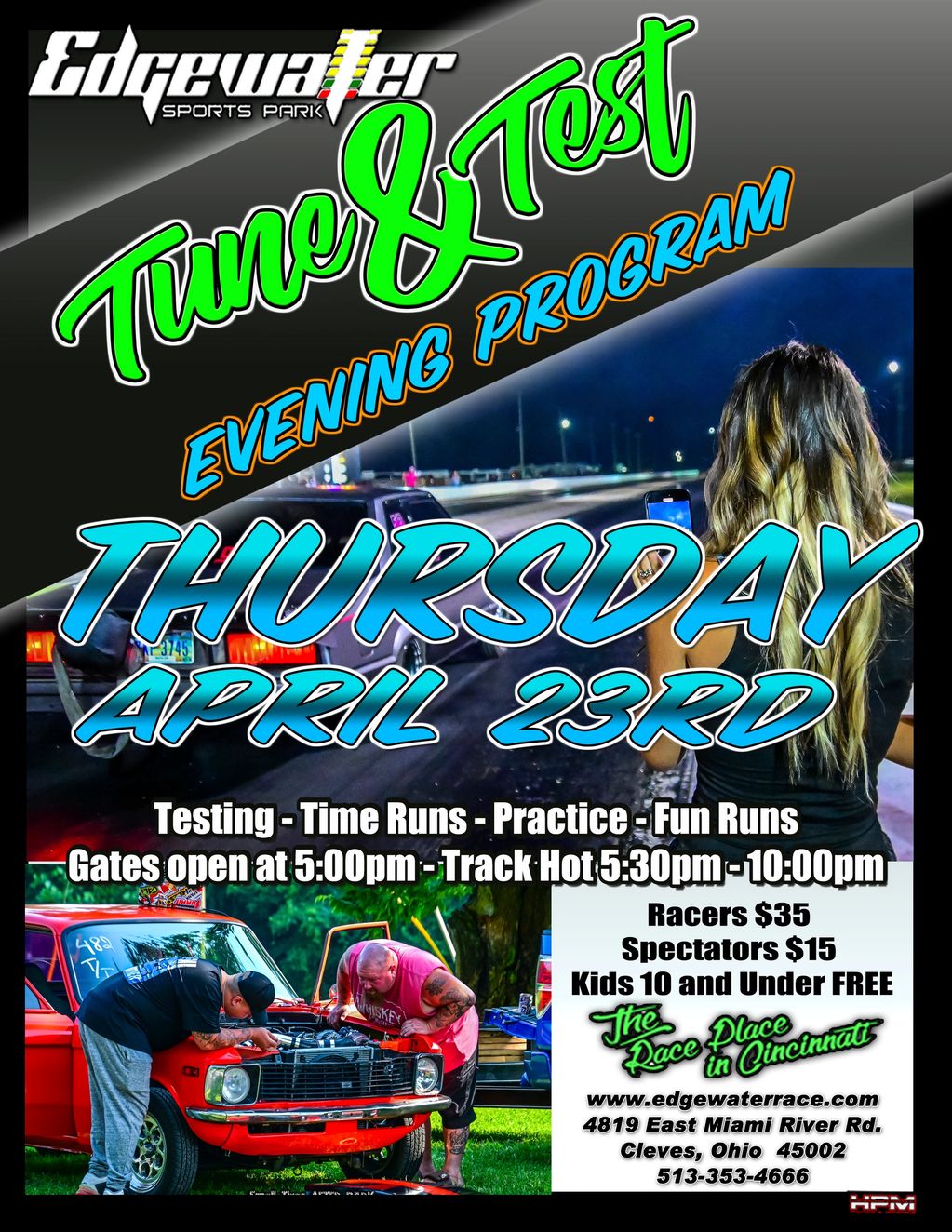 We start off with Tune & Test Thursday evening followed by Friday's prepped track, heads up Cincy Street Nights event. Saturday bring our 1st points bracket race.
